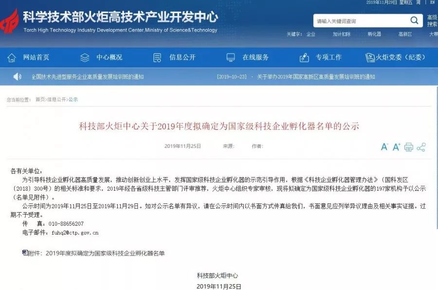 2019年11月25日,國家科技部火炬中心發(fā)布了“關于2019年度擬確定為國家級科技企業(yè)孵化器名單的公示(國科發(fā)區(qū)﹝2018﹞300號)”的通知,蕪湖礱坊科技企業(yè)孵化器(大礱坊科技文化園)正式通過“國家級科技企業(yè)孵化器”認定。
