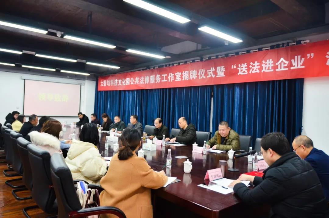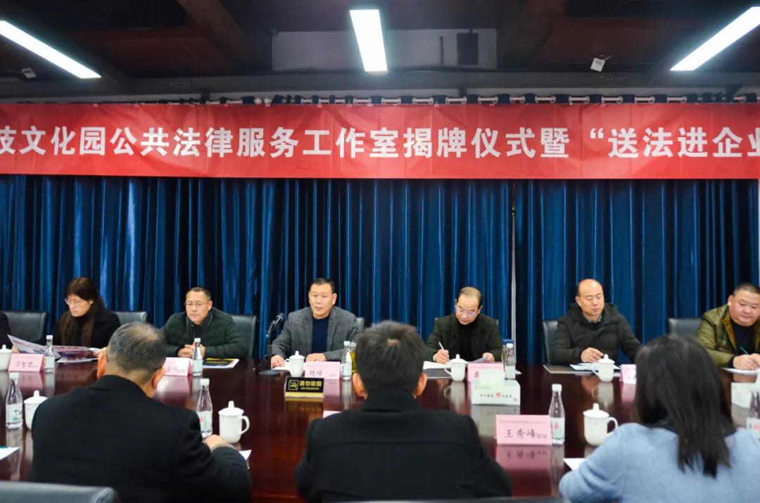 12月11日,大礱坊科技文化園公共法律服務(wù)工作室揭牌儀式暨“送法進企業(yè)”活動在園開展,區(qū)司法局、區(qū)委政法委、區(qū)法院、區(qū)檢察院、區(qū)工商聯(lián)、區(qū)經(jīng)信局、區(qū)委常委、政法委書記魏峰及各成員單位、園區(qū)負責人、企業(yè)代表等50余人出席活動。