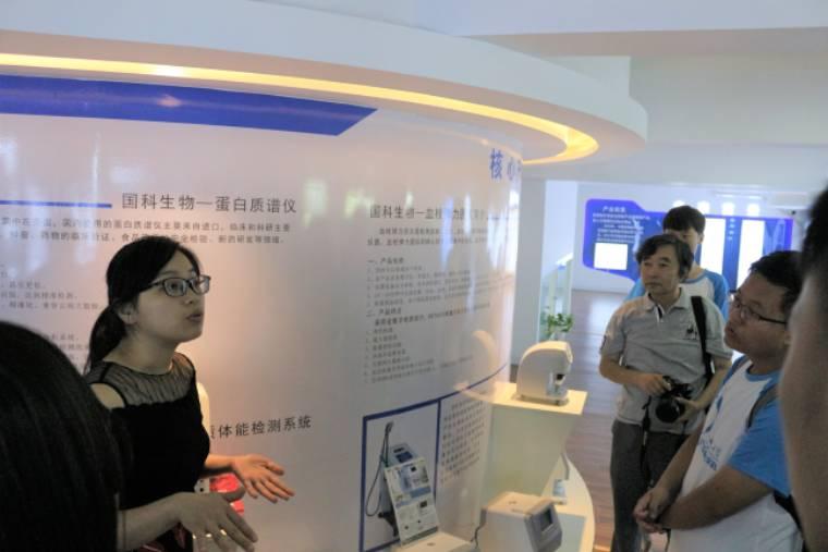 圖為安徽國科生物科技有限公司負責人向團隊成員及指導老師介紹公司先進的科技產品和已經取得的成績。通訊員彭文婷攝